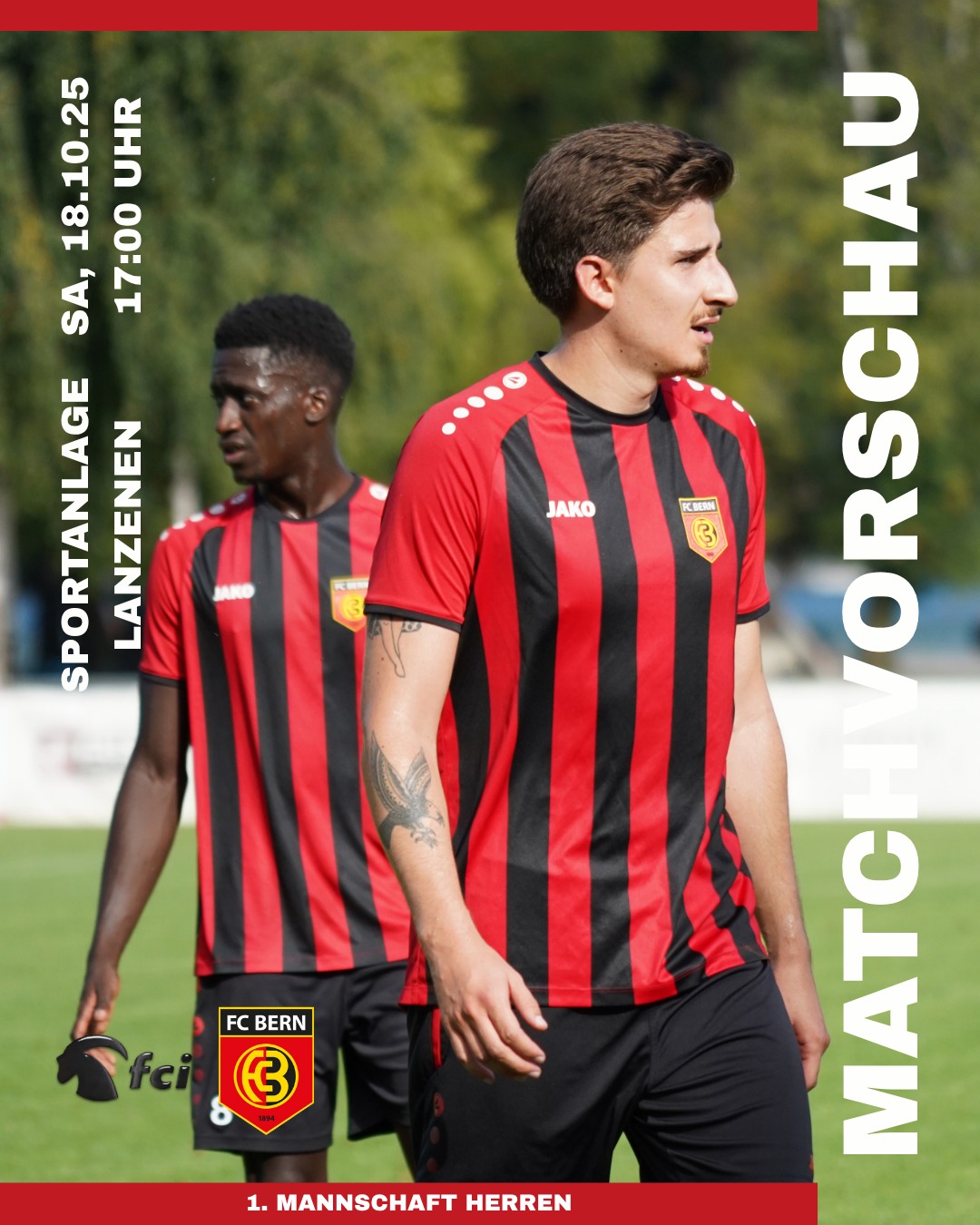🔴 Matchvorschau ⚫ Nach zwei Niederlagen in Folge will die 1. Mannschaft der Herren am kommenden Samstag wieder zurück in die Erfolgsspur finden. In der 11. Runde wartet mit dem FC Interlaken der aktuelle Tabellenführer, ein echter Gradmesser für das Team in rot-schwarz. 📅 Samstag, 18.10.2025 🕓 Anpfiff: 17:00 Uhr 📍 Sportanlage Lanzenen, Interlaken 2. Liga Regio – Saison 25/26 🔴 HOPP BÄRN ⚫ #fcbern1894 #hoppbärn #bern #matchvorschau #2ligaregio #auswärtsspiel #interlaken #bernerverein #rotsschwarz #swissfootball #teamgeist #fightback #forzabärn